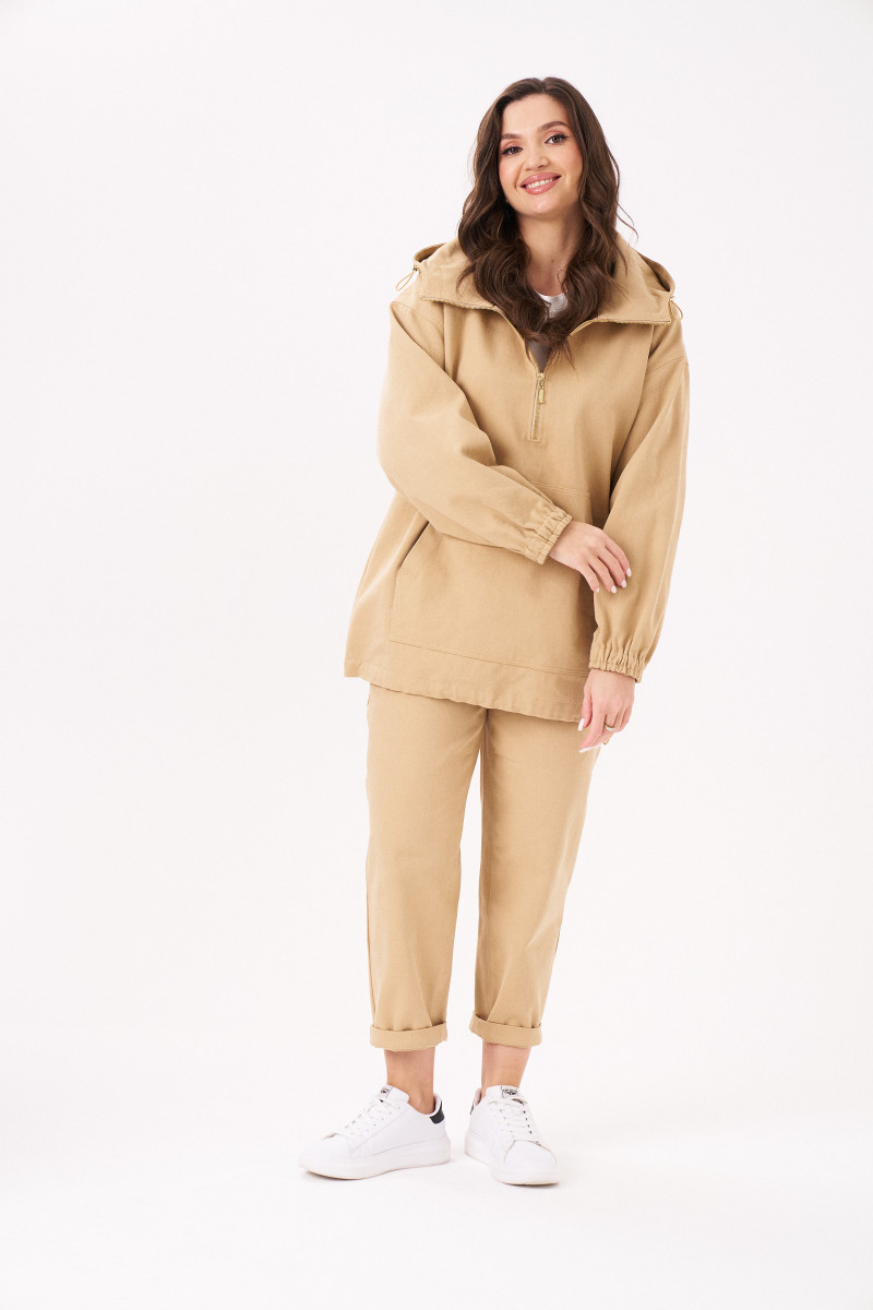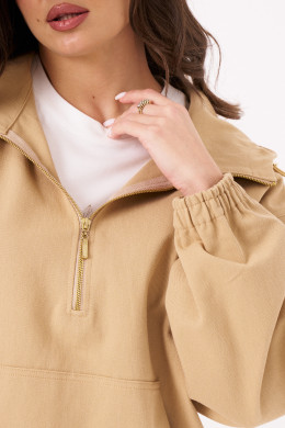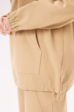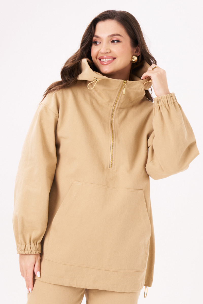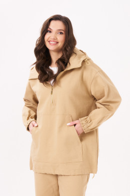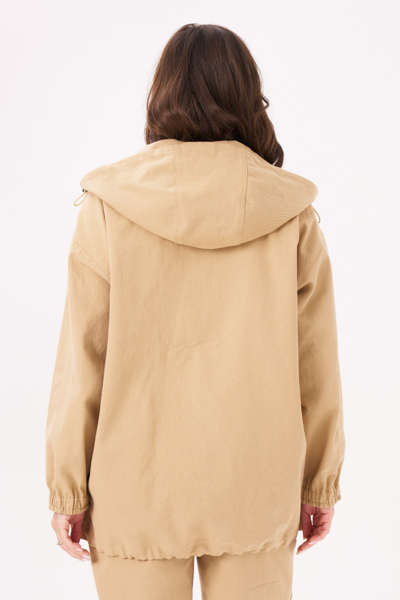 Жакет женский типа анорака из джинсовой ткани с большим содержанием хлопка ткани для повседневной носки прямого силуэта. В жакете имеется застежка-молния от горловины до середины переда. Перед имеет накладной карман. Низ изделия имеет вставленную регулирующую облегание резинку. Горловина обработана капюшоном со вставленной регулирующейся резинкой. Линия плеча спущенная. Рукава втачные длинные, низ рукава на резинке. Стильная модель, которая будет отлично смотреться на вас и вашей фигуре. В данном джемпере приятного бежевого оттенка вы безусловно будете покорять всех своей красотой.