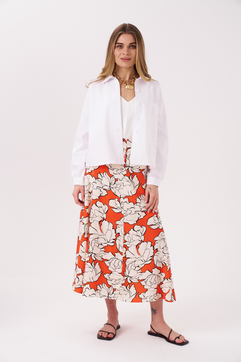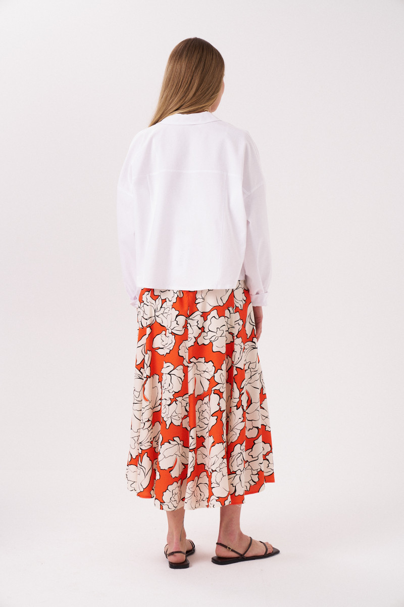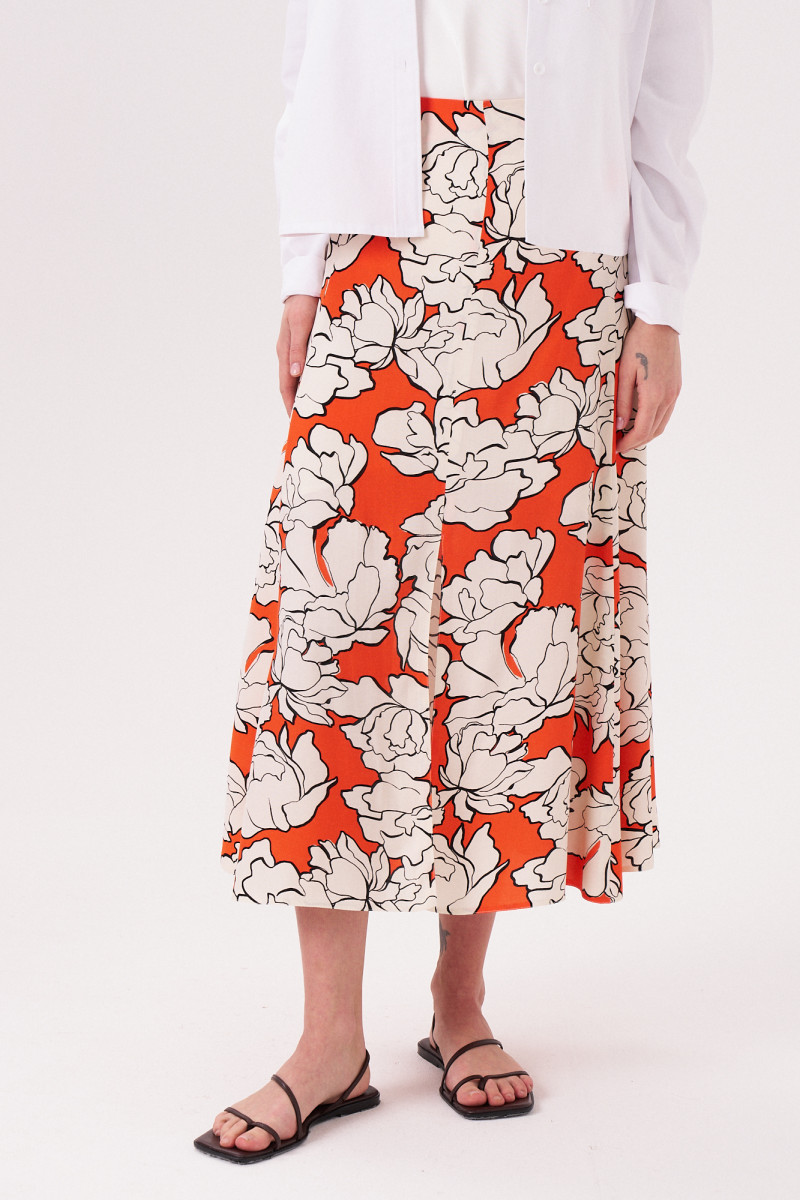 Юбка женская из вискозной ткани прямого силуэта на подкладке для повседневной носки. Подкладка из вискозной ткани. Верхний срез юбки обработан обтачкой. Переднее полотнище юбки со средним швом и разрезом в шве. Юбка имеет боковую часть. Заднее полотнище со средним швом и с застежкой молнией в шве. Длина изделия миди. Очень легкая и воздушная юбка в которой вы всегда будете в центре внимания.