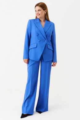 Брюки женские из костюмной ткани для повседневной носки. Силуэт расширяется к низу. На передней части брюк карманы. Брюки с отрезным поясом, застегивающимся на тесьму--молнию и пуговицу. В заднюю часть пояса вставлена резинка, есть шлевки. На задней части брюк есть прорезной карман.