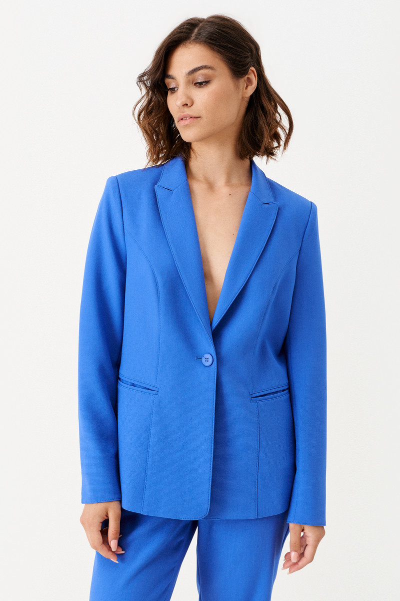 Жакет женский из поливискозной ткани для повседневной носки. Изделие на поливискозной подкладке. Жакет однобортный полуприлегающего силуэта с длинным рукавом. По переду жакета рельефные швы и прорезные карманы. По спинке рельефные швы.