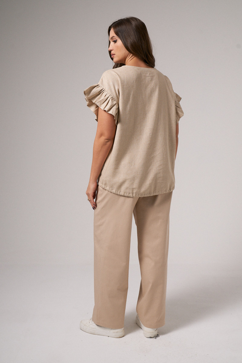 | 48 | Брюки: Высота посадки - 29см, Длина брюк с поясом - 109см, Длина по внутреннему шву - 79см, Ширина брючин сверху - 74см, Обхват брюк по низу - 52см, Ширина по бедрам - 58см, Ширина по талии - 40см; |