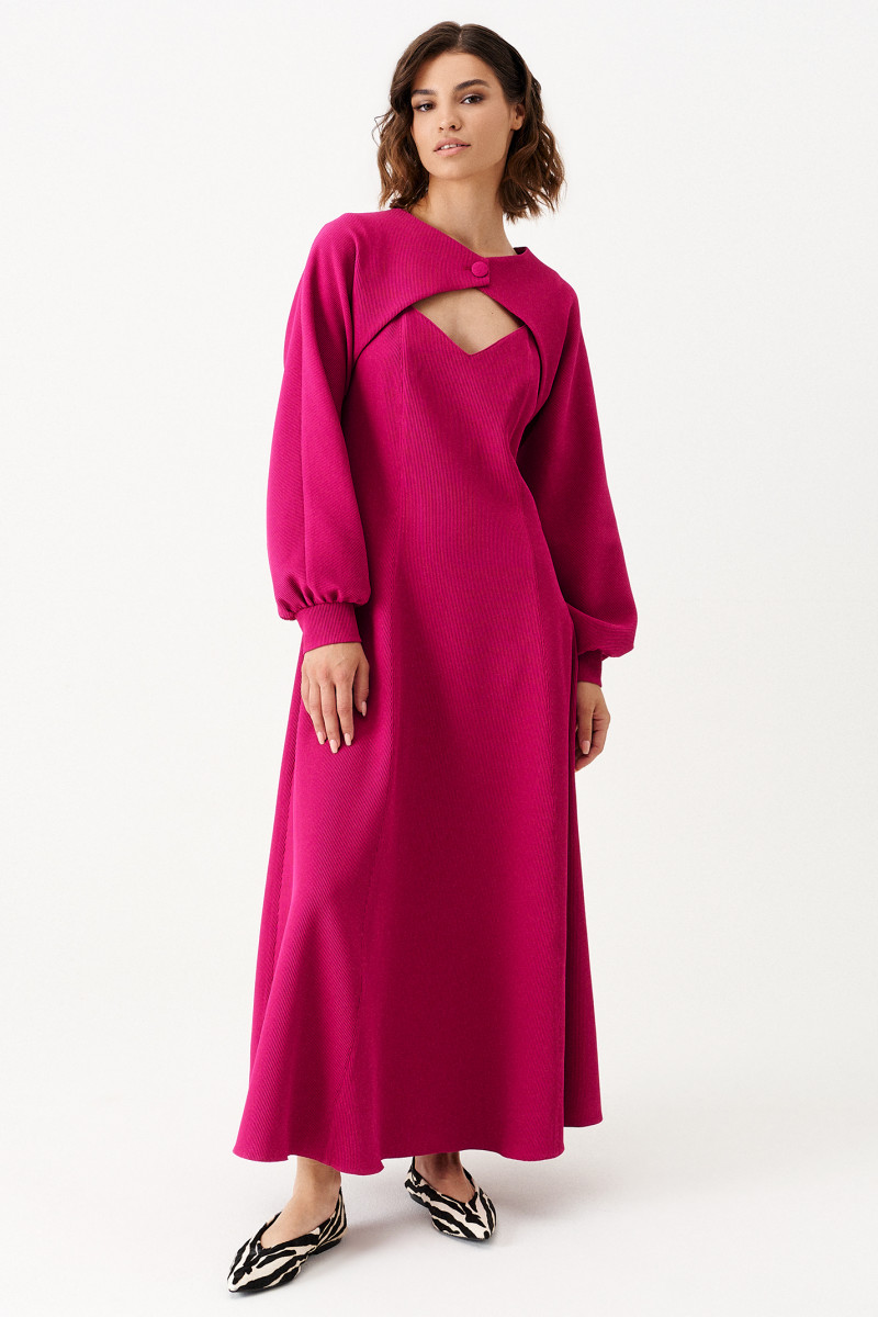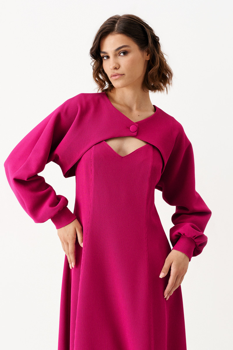 | 42 | Жакет: Длина изделия - 33см, Длина рукава - 70см, Ширина по низу - 45см, Ширина рукава - 22,4см; Платье: Длина изделия - 125см, Длина спинки - 40см, Ширина плеча - 6см, Ширина по бедрам - 58см, Ширина по груди - 42см; |
