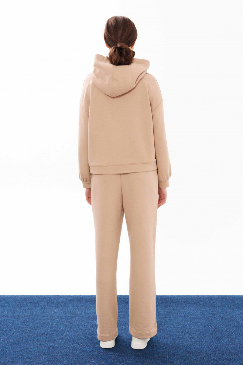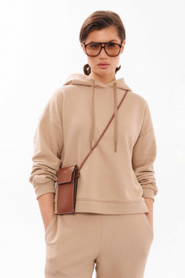 Джемпер женский прямого силуэта из смесового трикотажного полотна для повседневной носки. Горловина обработана притачным капюшоном. Линия плеча спущена. Низ рукава обработан притачной манжетой. Низ изделия обработан притачным поясом. Данный джемпер отлично подойдет для тех, кто ценит минимализм в вещах, а также для тех, кто сторонник модной и практичной одежды.
