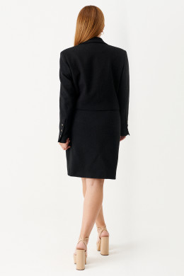 | 50 | Жакет: Длина изделия - 48см, Длина рукава - 62см, Ширина плеча - 13,7см, Ширина по груди - 55см, Ширина по низу - 53см, Ширина рукава - 19см; Юбка: Длина юбки - 56см, Ширина по бедрам - 55см, Ширина по талии - 42см; |