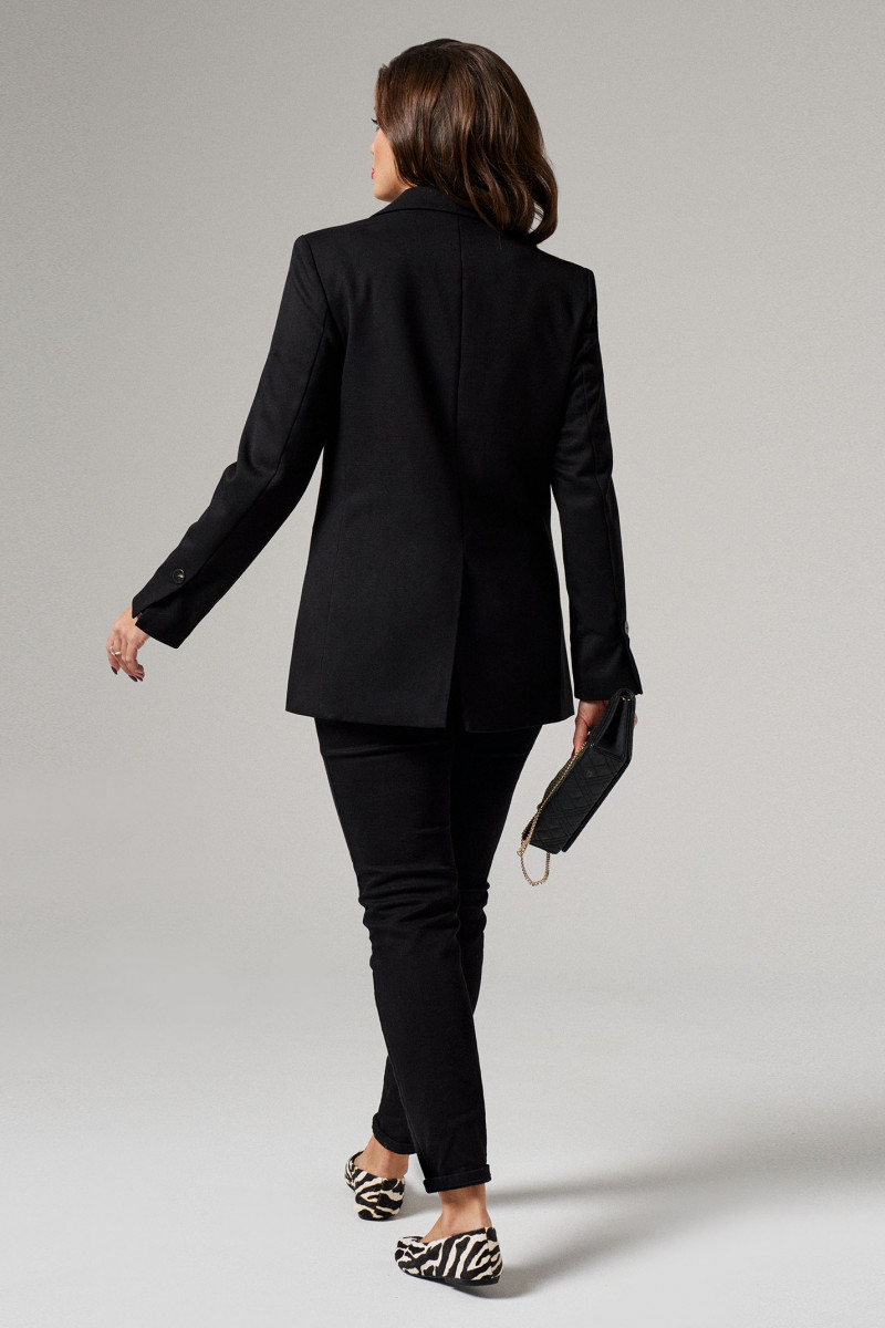 Жакет женский из смесовой ткани для повседневной носки прямого силуэта. Застежка в жакете двубортная на две обметанные петли и две пуговицы. Перед имеет два кармана с листочкой, а также боковую часть переда, идущую от проймы до кармана. На переде располагается два рельефа идущих от проймы до линии низа изделия. Спинка со средним швом и с шлицей в шве по низу изделия, а также рельефы, идущие от проймы до линии низа изделия. Горловина обработана пиджачным воротником. Рукава втачные двухшовные, по низу шлицы имеется шлица с застежкой на одну обметанную петлю и одну пуговицу. Стильный и практичный жакет на любой выход, в нем вы будете чувствовать себя уверенней, а главное очень комфортно.