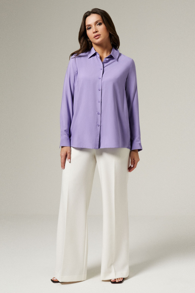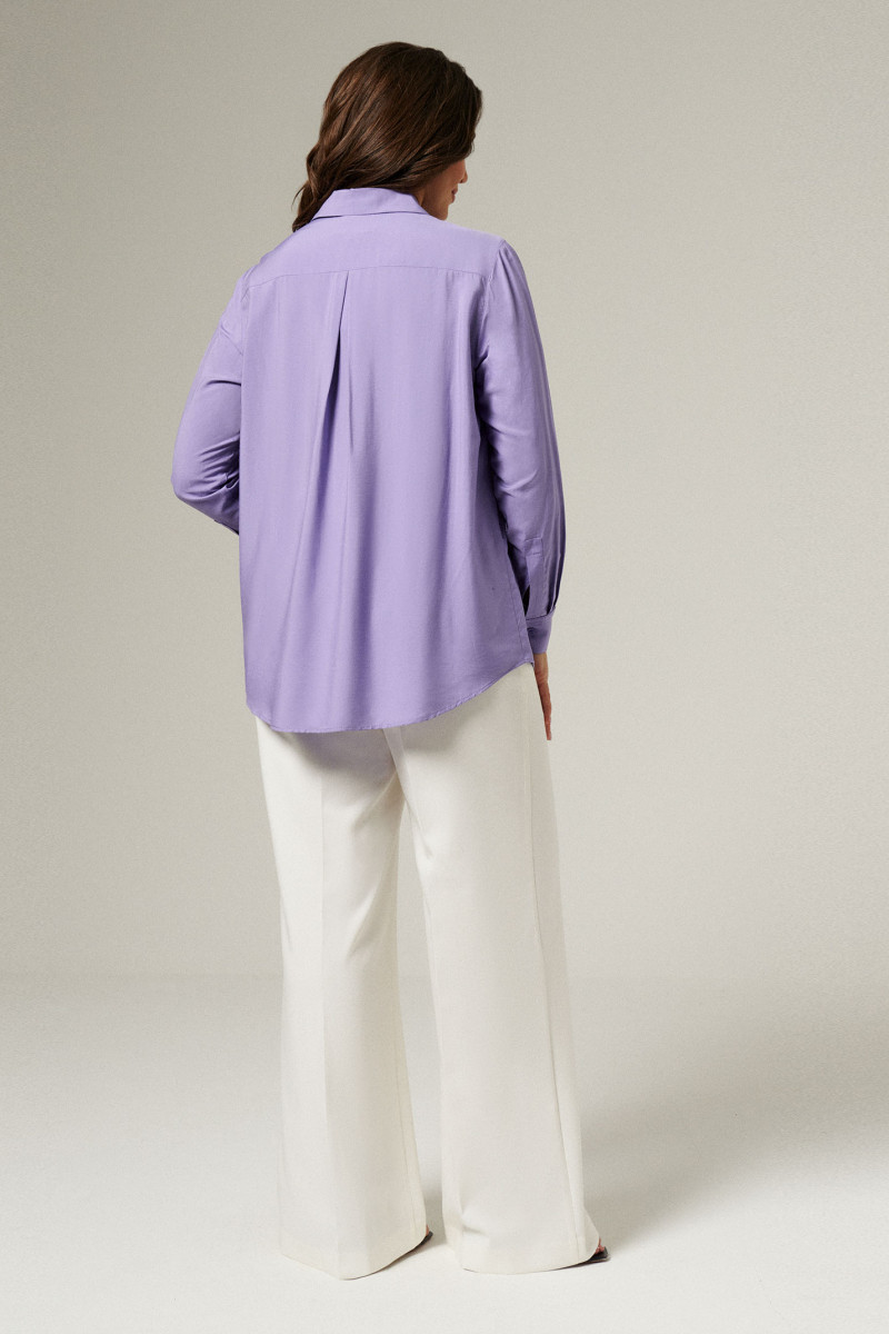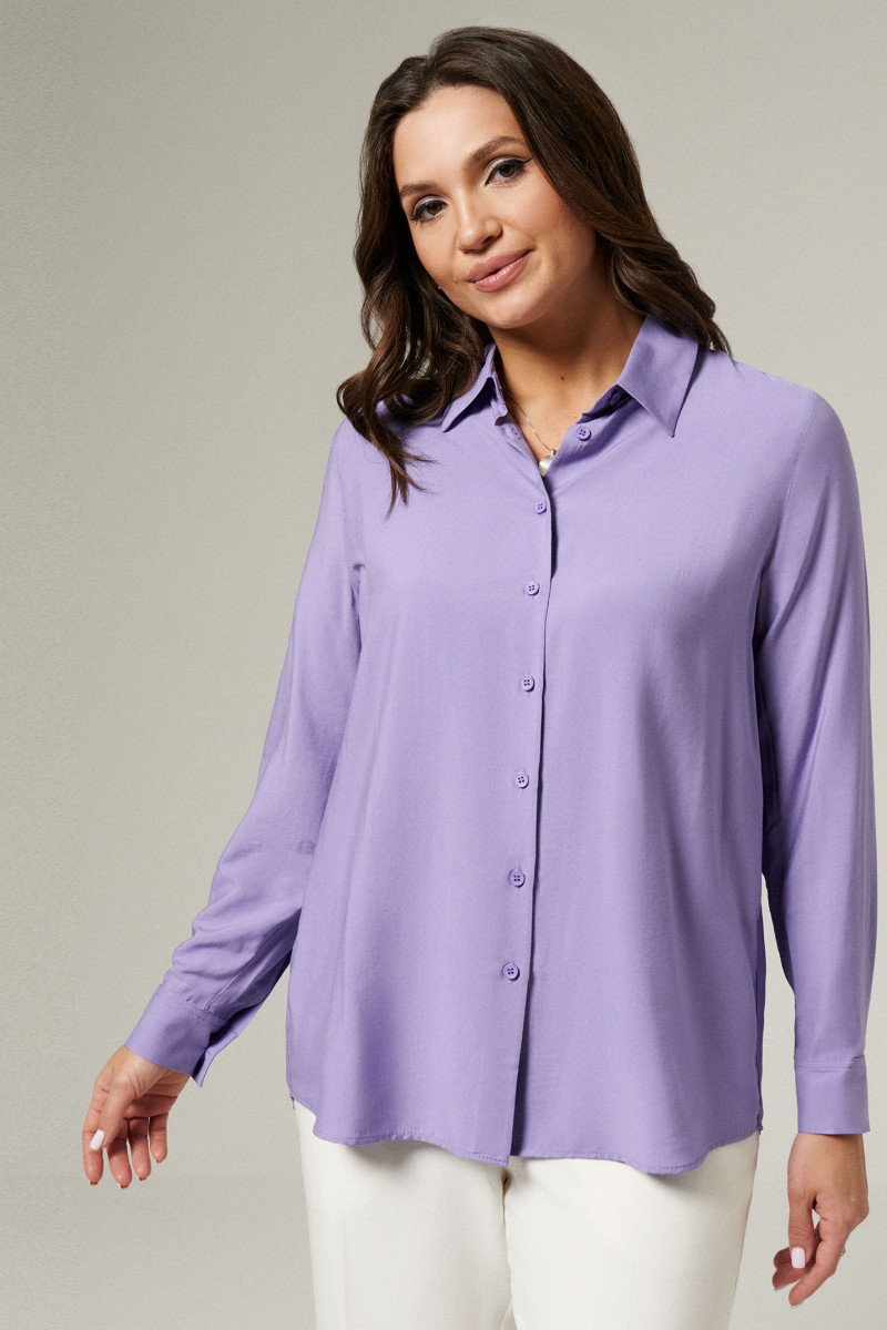 Блуза женская из вискозной ткани для повседневной носки. Изделие с длинным втачным рукавом оформленным притачной манжетой, застегивающейся на пуговицы. Блуза прямого кроя с фронтальной застежкой на пуговицы, воротником-стойкой. По спинке отрезная кокетка со встречной складкой. Изделие классической длины.
