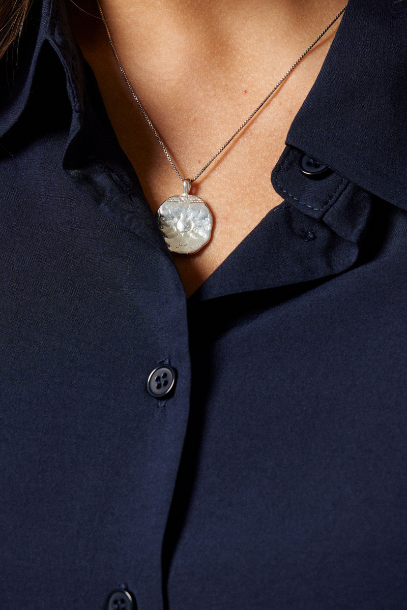 Блуза женская из вискозной ткани для повседневной носки. Изделие с длинным втачным рукавом оформленным притачной манжетой, застегивающейся на пуговицы. Блуза прямого кроя с фронтальной застежкой на пуговицы, воротником-стойкой. По спинке отрезная кокетка со встречной складкой. Изделие классической длины.