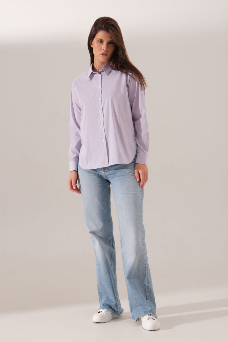 Блуза женская из хлопковой ткани для повседневной носки. Блуза с длинным втачным рукавом оформленым притачной манжетой. Блуза прямого кроя с фронтальной застежкой на пуговицы, воротником-стойкой. Спинка со встречной складкой от горловины. Длина изделия классическая.
