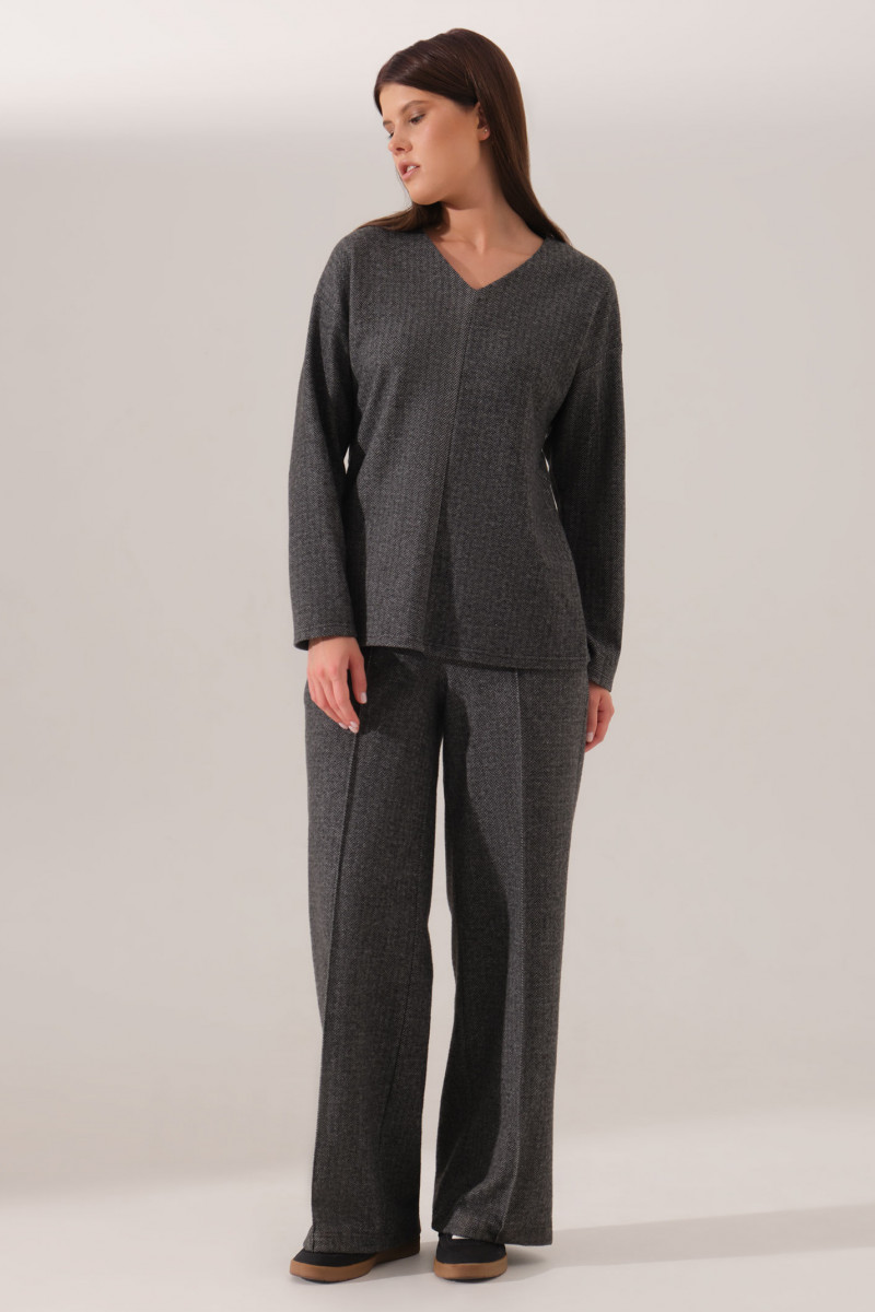 Джемпер женский из смесового трикотажного полотна для повседневной носки. Джемпер прямого силуэта. Перед со средним швом. Горловина V-образная, обработана обтачкой. Рукава втачные длинные. Линия плеча чуть спущена. Очень уютный и комфортный в носке джемпер, который станет незаменимой вещью в вашем гардеробе, а главное будет греть вас в прохладное время.