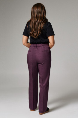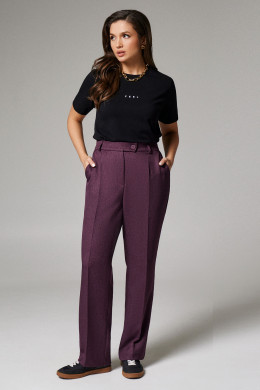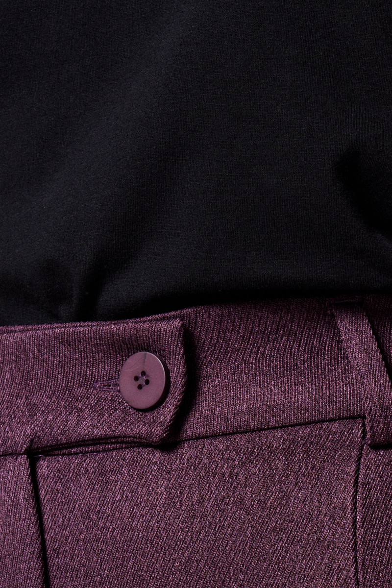 Брюки женские из поливискозной ткани для повседневной носки. Брюки прямые, слегка зауженные. На передней части брюк есть боковые карманы.Верх брюк обработан отрезным поясом, застёгивающийся на тесьму-молнию и потайной крючок. На задней части брюк есть талиевые вытаки и прорезные карманы. Ткань однотонная.