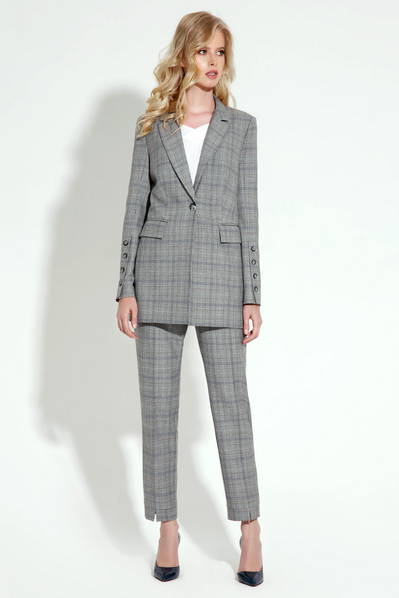 | 42 | Жакет: Длина изделия - 74см, Длина рукава - 62см, Ширина плеча - 11,5см, Ширина по бедрам - 49,5см, Ширина по груди - 46,5см, Ширина рукава - 16см; Брюки: Высота посадки - 23см, Длина брюк с поясом - 99см, Длина по внутреннему шву - 75см, Ширина брючин сверху - 59,5см, Обхват брюк по низу - 34,5см, Ширина по бедрам - 46,5см, Ширина по талии - 34см; |