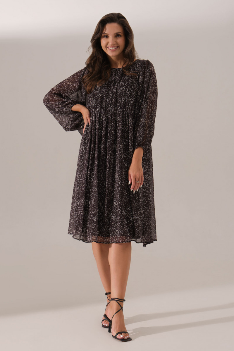 | 46 | Платье: Длина изделия - 101см, Длина рукава - 54см, Длина спинки до подреза - 30см, Ширина плеча - 7см, Ширина по бедрам - 108см, Ширина по груди - 73см, Ширина рукава - 45.4см; |