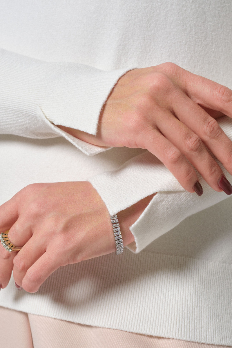 | 44 | Джемпер: Длина переда от горловины - 55см, Длина рукава - 62см, Длина спинки - 60см, Ширина плеча - 13см, Ширина по груди - 50см, Ширина по низу - 42см, Ширина рукава под проймой - 15.5см; |