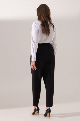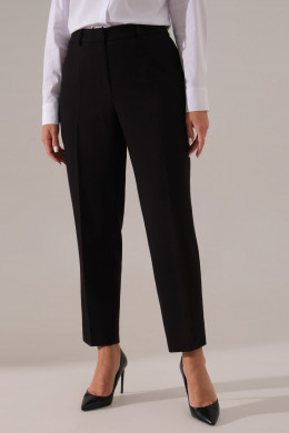 Брюки женские прямые из смесовой ткани для повседневной носки. Верхний срез брюк обработан притачным поясом со вставкой сзади на резинке, застежка на крючок, а также имеется застежка на тесьму-молнию в среднем шве брюк. Задняя часть брюк имеет талиевые вытачки и прорезной карман с двумя обтачками. В брюках расположен в боковом шве карман с подкройным бочком. Отличный классический вариант брюк, которые будут гармонично смотреться под любые изделия.