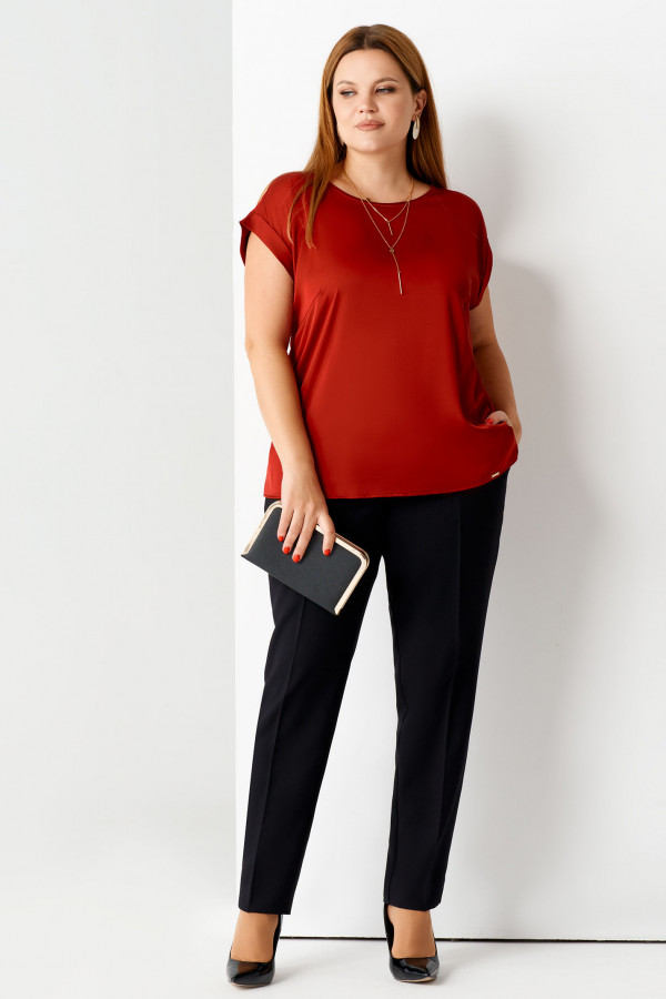 Брюки женские прямые из смесовой ткани для повседневной носки. Верхний срез брюк обработан притачным поясом со вставкой сзади на резинке, застежка на крючок, а также имеется застежка на тесьму-молнию в среднем шве брюк. Задняя часть брюк имеет талиевые вытачки и прорезной карман с двумя обтачками. В брюках расположен в боковом шве карман с подкройным бочком. Отличный классический вариант брюк, которые будут гармонично смотреться под любые изделия.