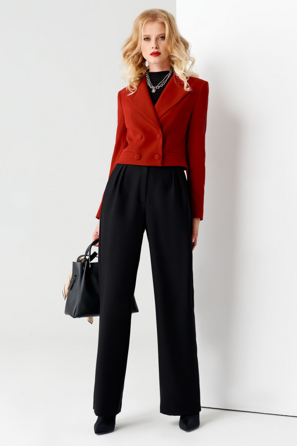 56Брюки: Высота посадки - 28см, Длина брюк без пояса - 95.5см, Длина по внутреннему шву - 72.5см, Ширина брючин сверху - 71.5см, Обхват брюк по низу - 35см, Ширина по бедрам - 56см, Ширина по талии - 42см;