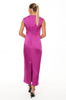 Платье женское атласное полуприлегающего силуэта. Платье подходит как для повседневной носки, так и для праздничных случаев. Перед имеет две нагрудные вытачки. Спинка имеет четыре талиевые вытачки и средний шов с потайной застежкой молнией в шве. В среднем шве по спинке имеет разрез к низу изделия. Горловина чуть заужена. Платье не имеет рукавов. Длина платья миди. Отличный вариант платья для вашего времяпровождения, в нем вы обязательно почувствуете себя уверенней.