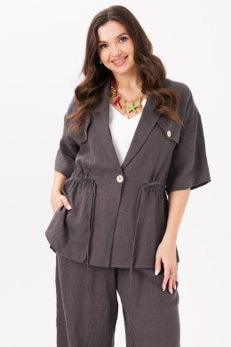 Женский жакет из льняной ткани — идеальный выбор для тех, кто ищет универсальный элемент гардероба. Этот классический пиджак прямого силуэта сочетает в себе элегантность и комфорт, подходя как для повседневной, так и для офисной носки. Свободный крой с утягивающей кулисой на талии позволяет адаптировать посадку под любую фигуру, делая образ более утонченным или расслабленным по желанию. Пиджачный воротник, спущенная линия плеча и втачные рукава длиной чуть ниже локтя создают легкий и стильный силуэт. Центральная застежка на пуговицу и декоративные клапаны с пуговицами придают нарядный акцент даже в базовом исполнении. Жакет особенно актуален как весенний или летний вариант — благодаря натуральной льняной ткани он обеспечивает комфорт в теплое время года. Этот женский пиджак легко комбинируется с деловыми брюками, юбками, джинсами, превращаясь из повседневного в праздничный элемент гардероба. Подходит для офиса, деловых встреч, прогулок, свиданий и торжественных мероприятий. Такой офисный и одновременно женственный жакет станет незаменимым решением для тех, кто ценит стиль, удобство и практичность. Добавьте в свой гардероб этот праздничный и в то же время повседневный пиджак, чтобы выглядеть безупречно в любой ситуации.
