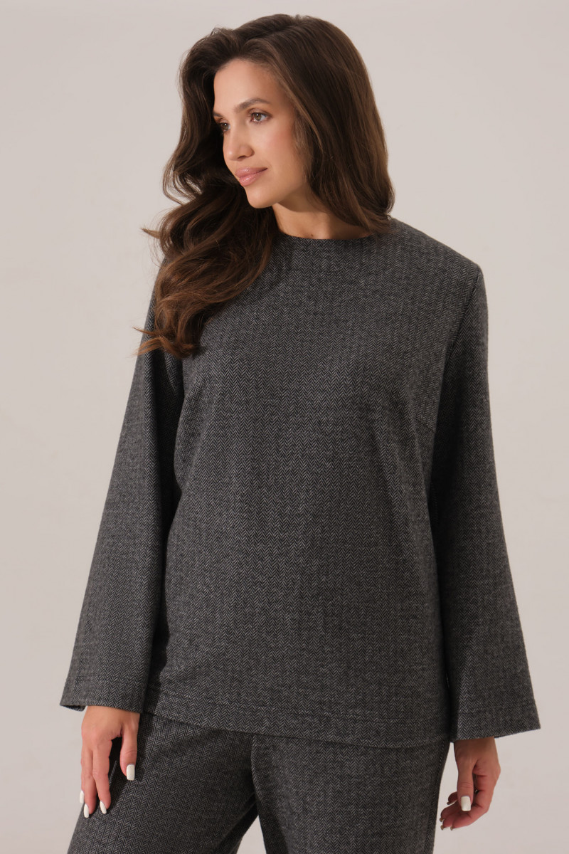 Джемпер женский из смесового трикотажного полотна для повседневной носки. Джемпер прямого силуэта. Перед имеет две нагрудные вытачки. Спинка со средним швом и небольшой потайной застежкой-молнией. Горловина чуть расширена. Рукава втачные длинные. Очень уютный и комфортный в носке джемпер, который станет незаменимой вещью в вашем гардеробе, а главное будет греть вас в прохладное время.