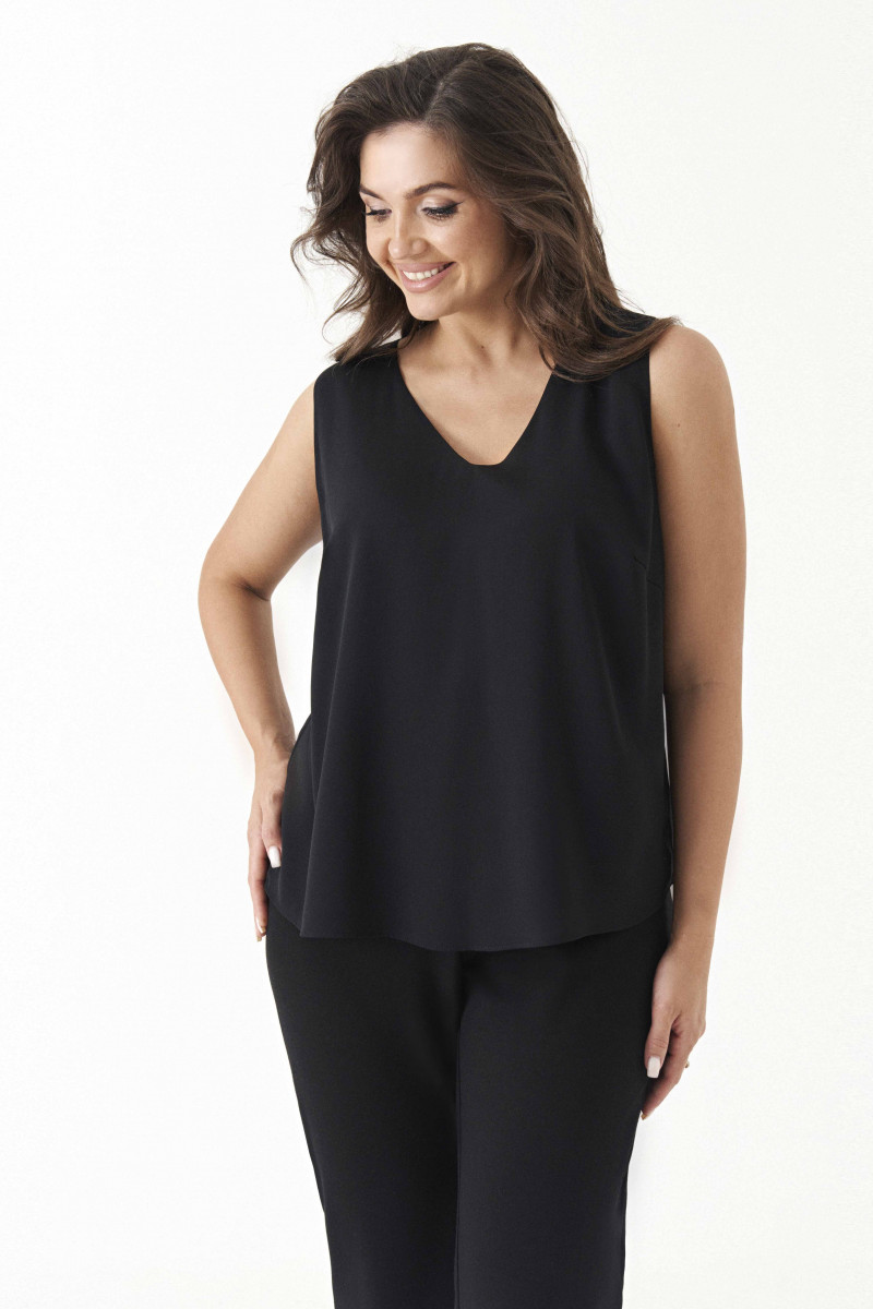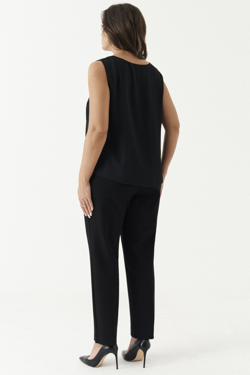 | 56 | Блузка: Длина изделия - 118см, Длина рукава - 61см, Обхват шеи - 47см, Ширина плеча - 14см, Ширина по бедрам - 70см, Ширина по груди - 62см, Ширина рукава - 22см; Брюки: Высота посадки - 29см, Длина брюк - 104см, Длина по внутреннему шву - 77см, Ширина брючин сверху - 74см, Обхват брюк по низу - 40см, Ширина по бедрам - 61см, Ширина по талии - 44см; Топ: Длина изделия - 60см, Ширина плеча - 10см, Ширина по груди - 59см, Ширина по низу - 63см; |