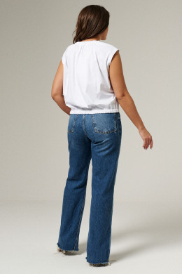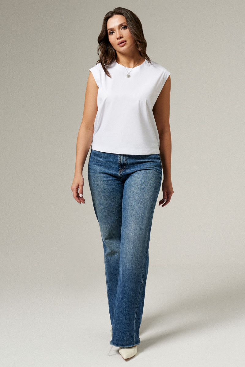Блуза женская из хлопковой ткани для повседневной носки. Изделие без рукавов с круглой горловиной. По спинке в горловину вставлена резинка. По низу изделия вставлена резинка. Длина блузы классическая.