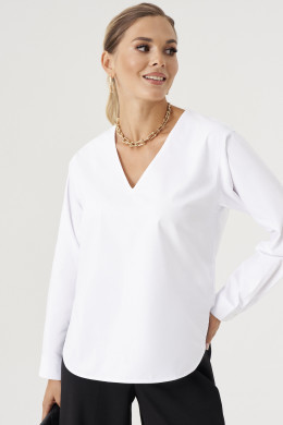 Блуза женская из хлопковой ткани для повседневной носки. Блуза свободная с длинным рукавом. Горловина V- образная. Рукава оформлены манжетой. Низ закругленный. По спинке изделия встречная складка.