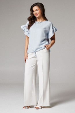 Блуза женская из льняной ткани для повседневной носки. Горловина круглая, пройма оформлена сборкой. По низу изделия кулиса.