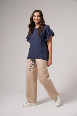 Блуза женская из льняной ткани для повседневной носки. Горловина круглая, пройма оформлена сборкой. По низу изделия кулиса.