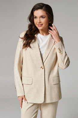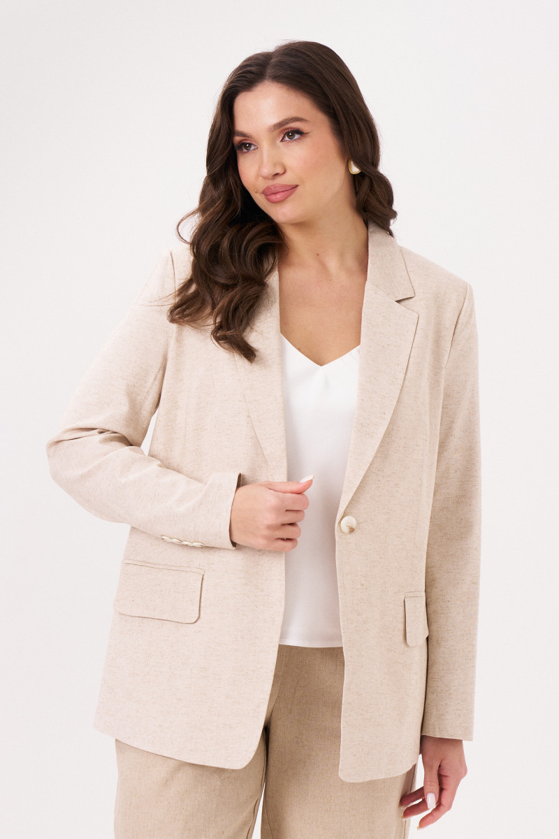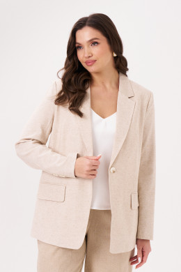 Жакет женский из смесовой ткани для повседневной носки на подкладке прямого силуэта. Подкладка в изделии из хлопчатобумажной ткани. Жакет с центральной бортовой застежкой на одну обметанную петлю и одну пуговицу. По переду располагается прорезной карман с клапаном и с двумя обтачками. Спинка со средним швом. Горловина обработана пиджачным воротником. Рукава двухшовные с шлицей по низу рукава, по шлице имеется пять пуговиц. Данное изделие станет отличным дополнением к любому гардеробу, и украсит ваш день.