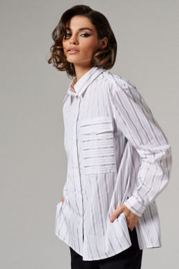 Блузка женская прямого силуэта с рубашечным рукавом, застегивающимся на 2 петли пуговицы. Перед с фронтальной застежкой на пуговицы, накладным карманом с притачным клапаном. Спинка с отрезной кокеткой