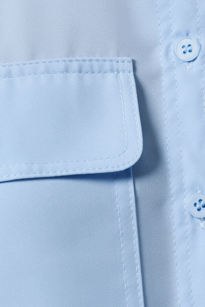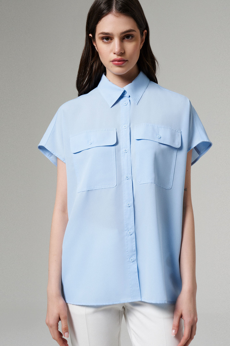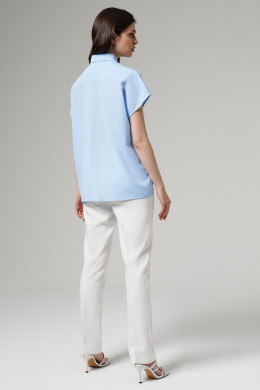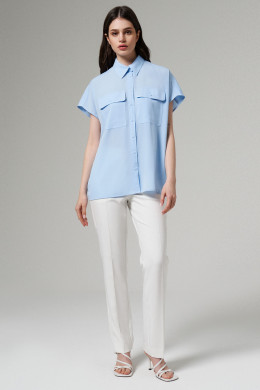 Блуза женская из лёгкой струящейся ткани для повседневной носки. Блуза прямого силуэта. Линия плеча спущенна, переходящая в рукав. Центральная застежка на петли-пуговицы. Горловина оформлена воротником- стойкой. Длина до середины бёдер, низ ровный.Эта модель идеально сочетается со светлыми брюками, что делает ее неотъемлемой частью вашего гардероба. Блузка также подойдет и для офиса, а также как нарядный элемент для вечерних мероприятий.