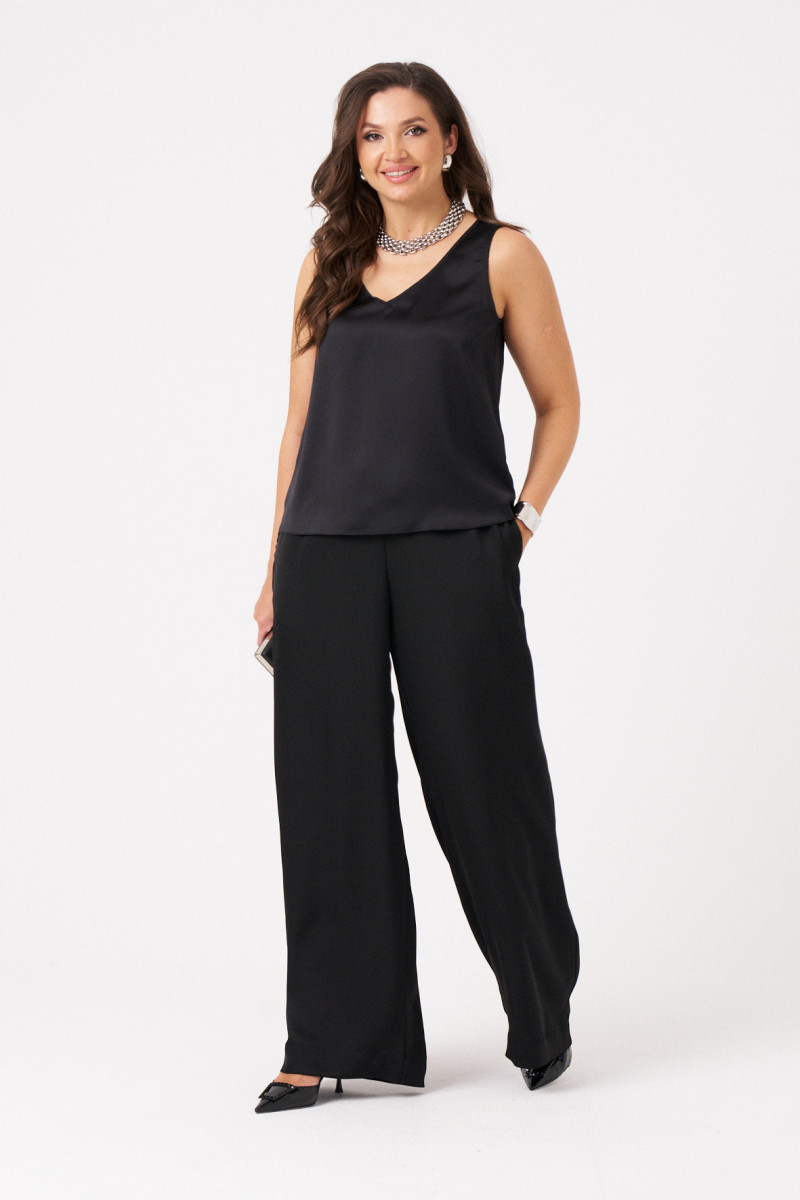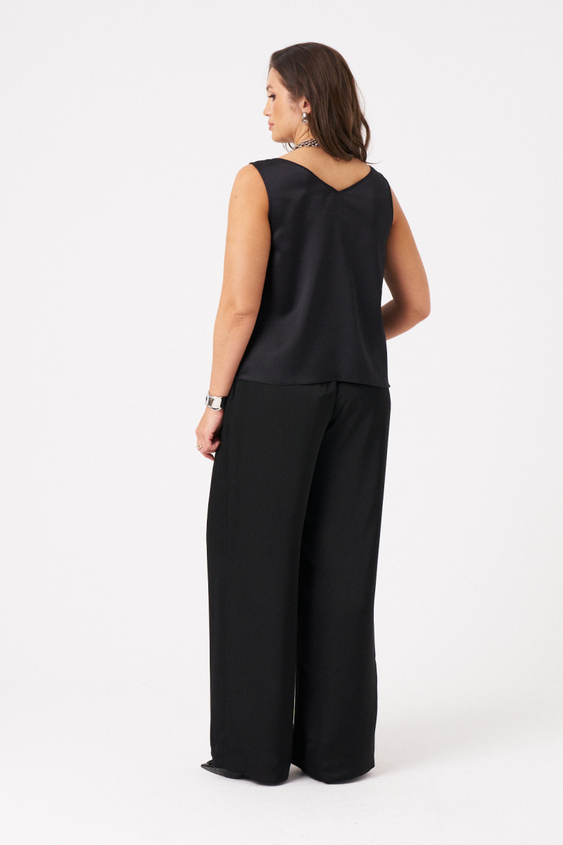 Блузка женская прямого силуэта из струящейся ткани. Подходит как для повседневной носки, так и для торжественных мероприятий. Блузка с V- образной горловиной. Блузка не имеет рукавов. Очень красивая и элегантная блузка, в которой вы всегда будете в центре внимания.