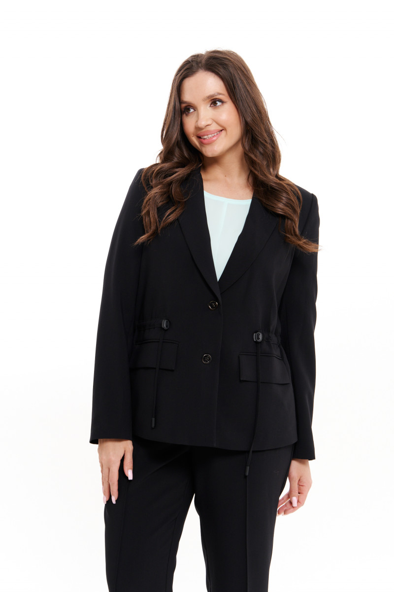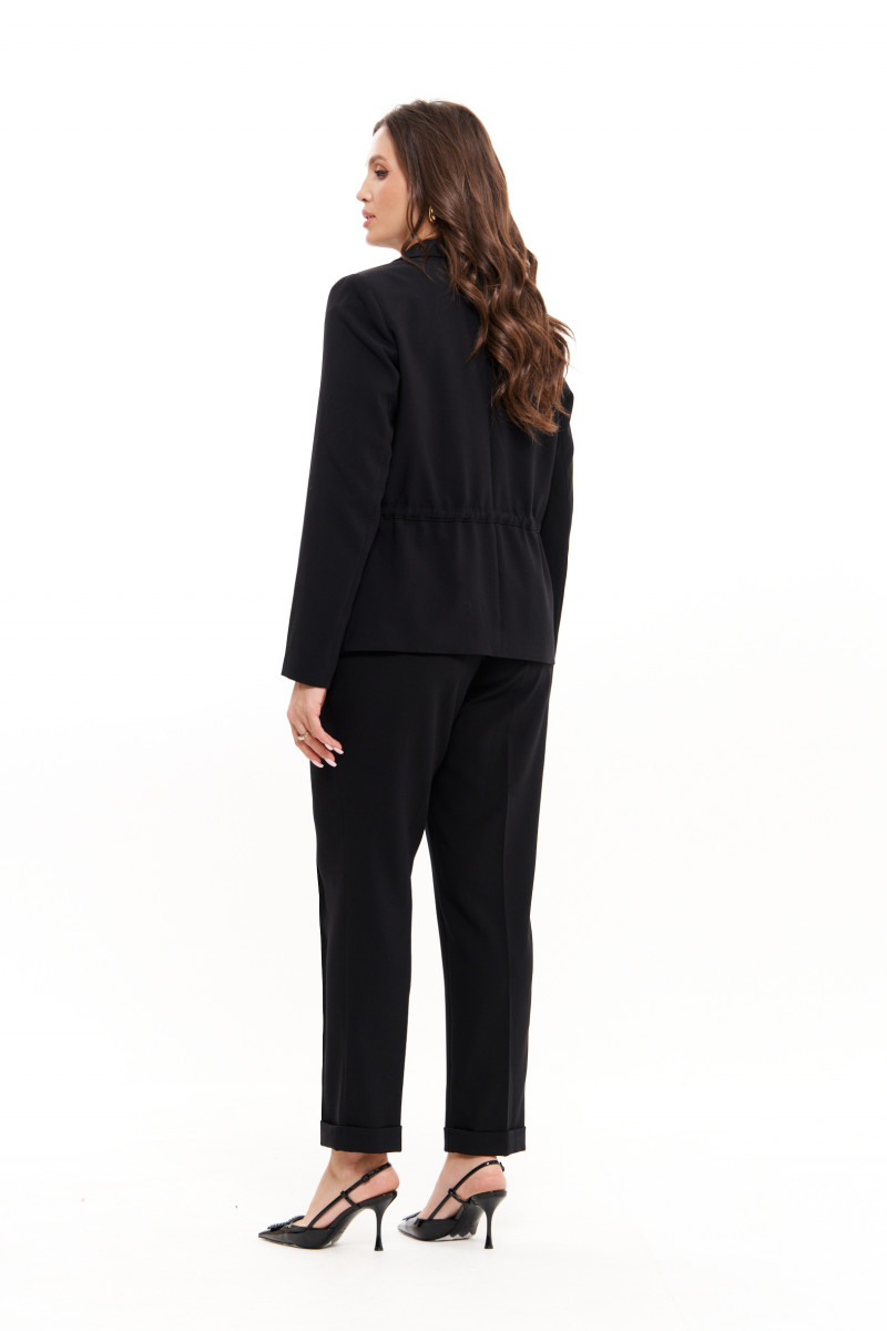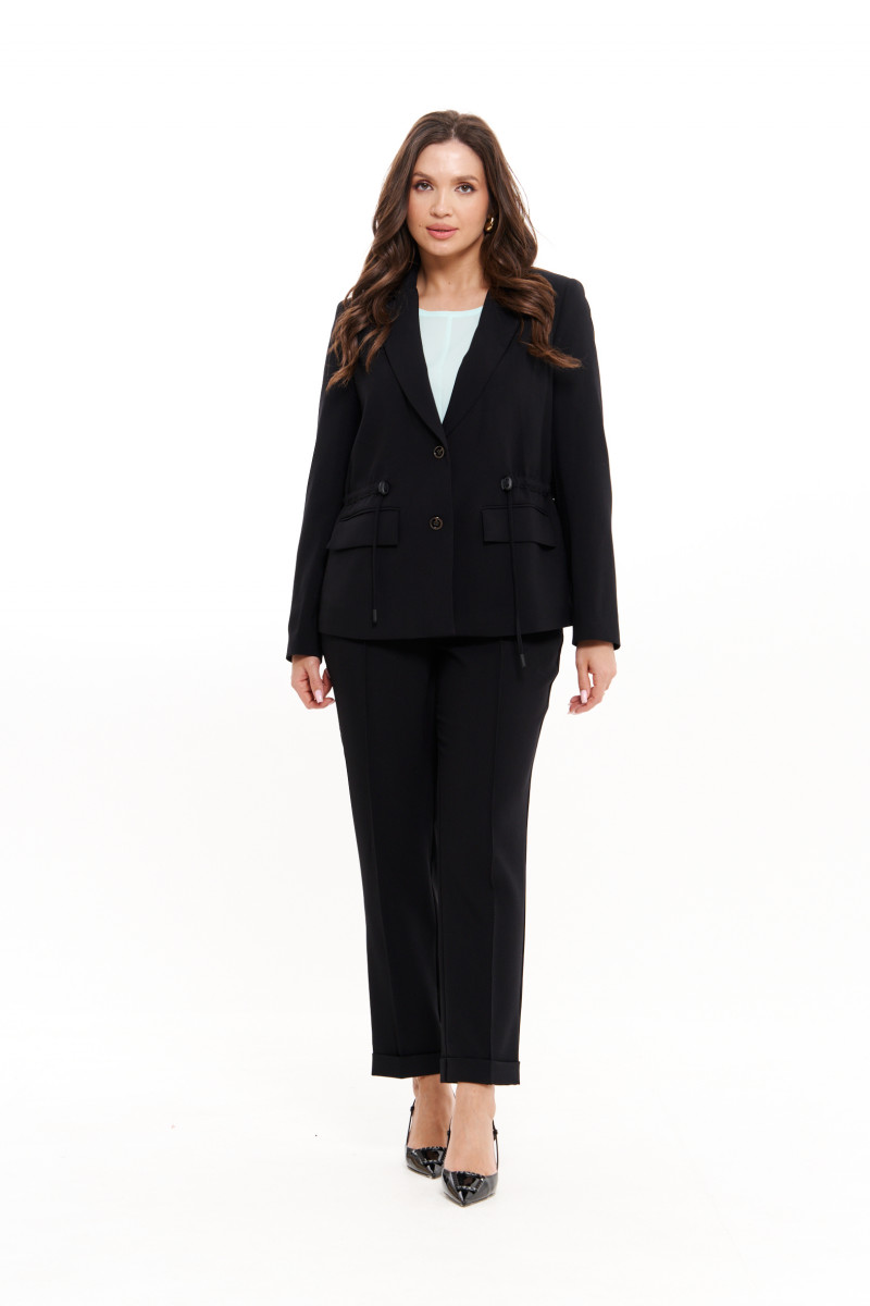 | 46 | Жакет: Длина изделия - 63см, Длина рукава - 64см, Длина до талии - 41см, Ширина плеча - 11.5см, Ширина по груди - 50см, Ширина по низу - 54см, Ширина рукава - 17см; Брюки: Высота посадки - 25.5см, Длина брюк с поясом - 98см, Длина по шаговому шву - 74см, Ширина брючин сверху - 62см, Обхват брюк по низу - 32.5см, Ширина по бедрам - 51см, Ширина по поясу - 37см; |
