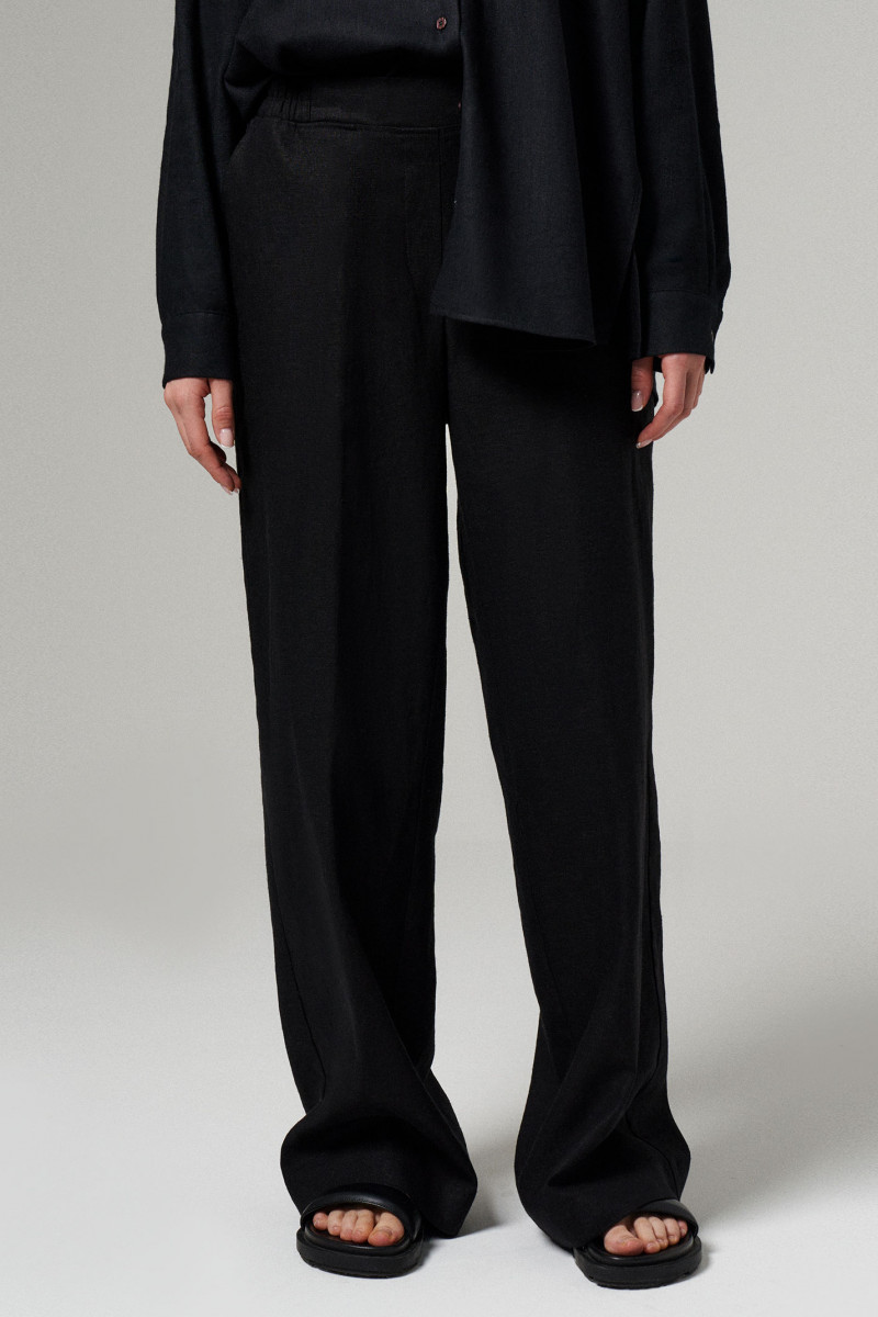 Прямые широкие брюки – удобная одежда, повседневной носки и особых случаев. Стильные брюки для прямые по силуэту. Пояс, дополненном резинкой, что очень удобно. В области боковых швов располагаются прорезные карманы. Отлично сочетается с блузками, футболками, топами, майками, жакетами. Данные брюки пошиты из льняной ткани. Льняная ткань обладает гигроскопичностью, воздухопроницаемостью и подойдёт для жарких дней. Заказывайте летние брюки больших размеров, чтобы пополнить свой сезонный гардероб практичной вещью.
