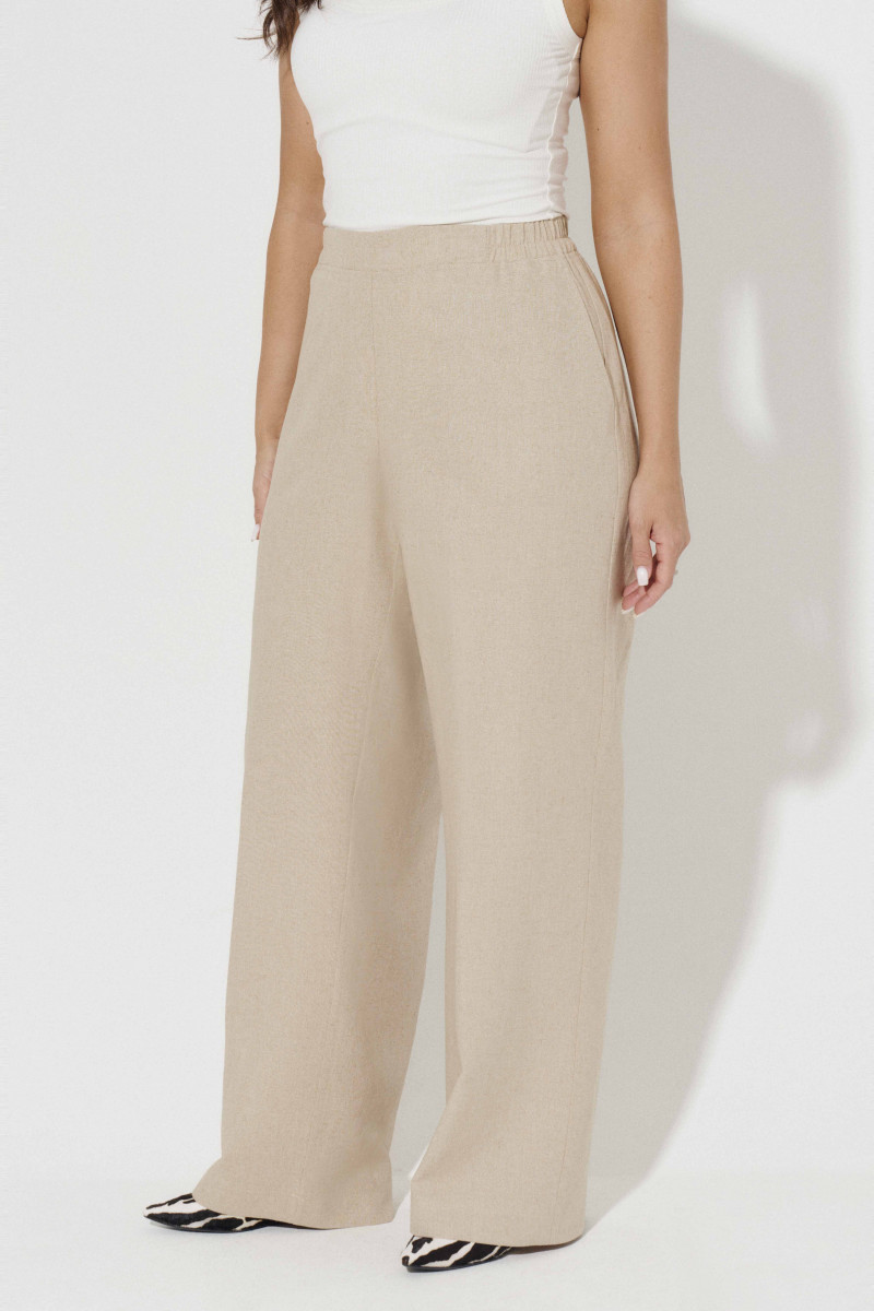 Прямые широкие брюки – удобная одежда, повседневной носки и особых случаев. Стильные брюки для прямые по силуэту. Пояс, дополненном резинкой, что очень удобно. В области боковых швов располагаются прорезные карманы. Отлично сочетается с блузками, футболками, топами, майками, жакетами. Данные брюки пошиты из льняной ткани. Льняная ткань обладает гигроскопичностью, воздухопроницаемостью и подойдёт для жарких дней. Заказывайте летние брюки больших размеров, чтобы пополнить свой сезонный гардероб практичной вещью.
