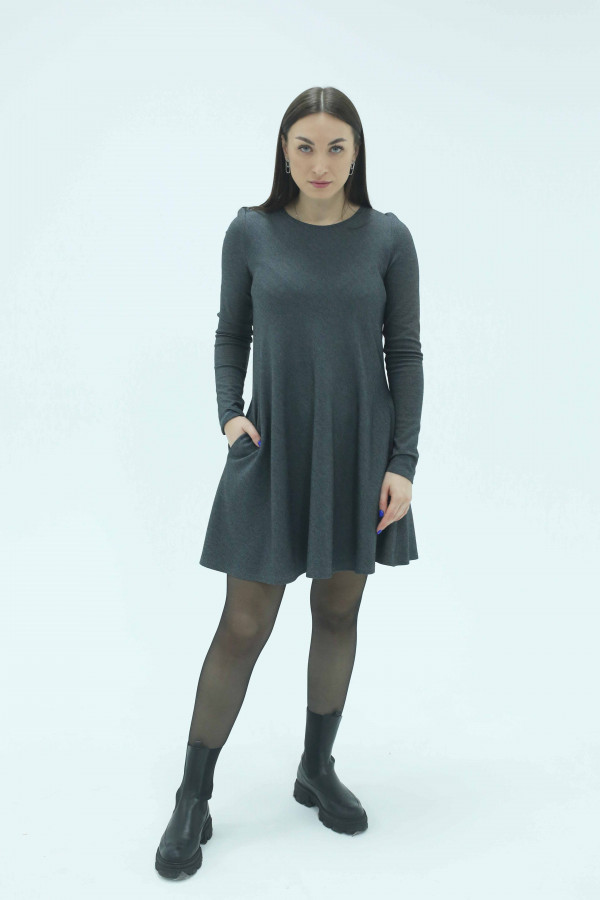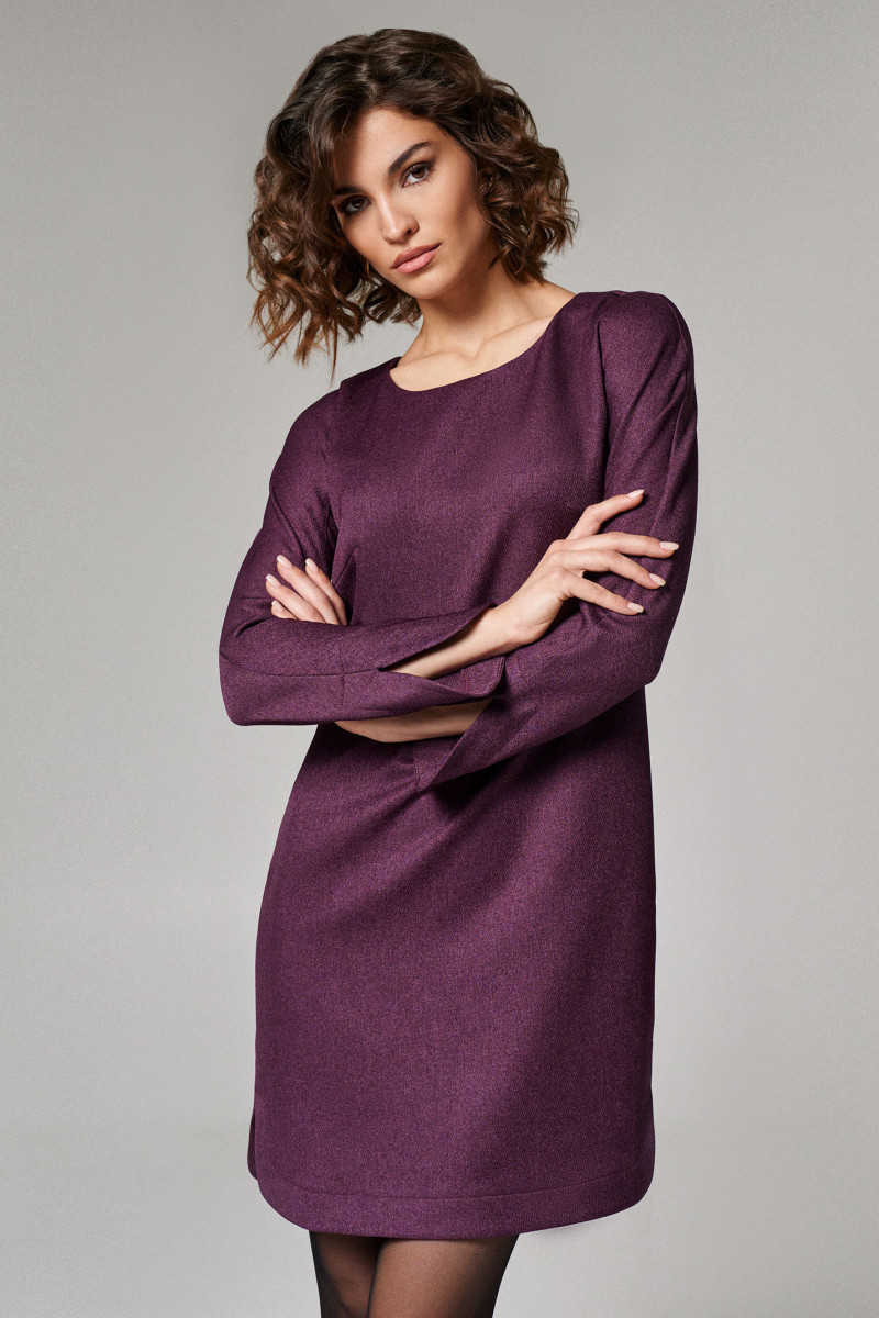 Платье женское прямого силуэта, с целькроеным рукавом и ластовицей для удобства поднятия руки.