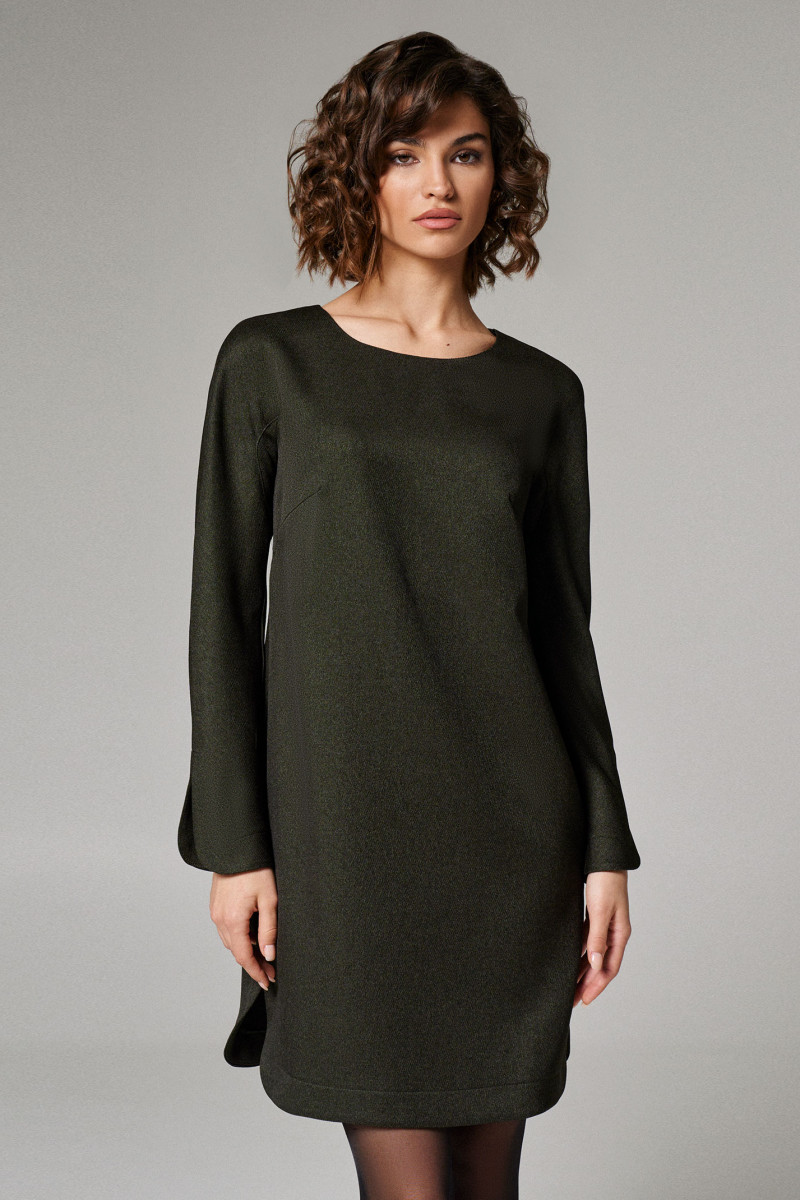 Платье женское прямого силуэта, с целькроеным рукавом и ластовицей для удобства поднятия руки.