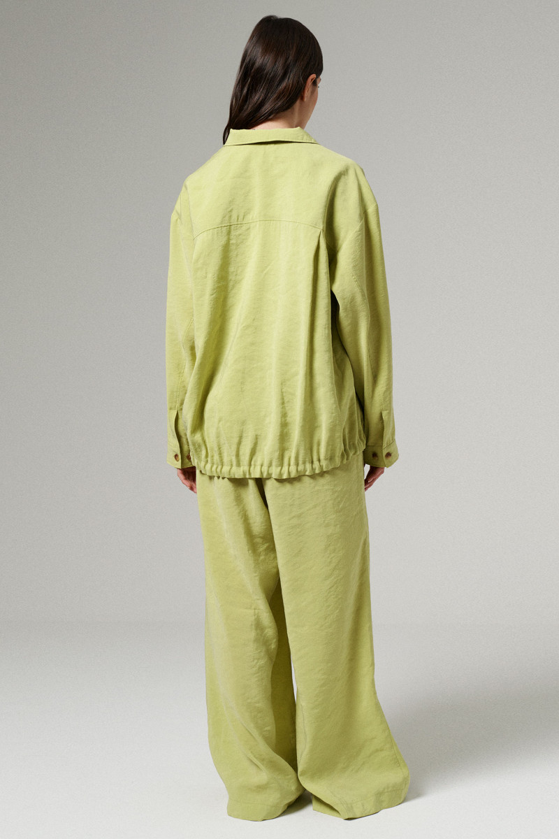 Этот женский жакет легко комбинируется с брюками, юбками или платьями, создавая нарядный или повседневный лук. Отрезная кокетка по спинке и кулисы по низу подчеркивают аккуратный силуэт. Легкая вискозная ткань делает его идеальным для весеннего и летнего сезонов.
