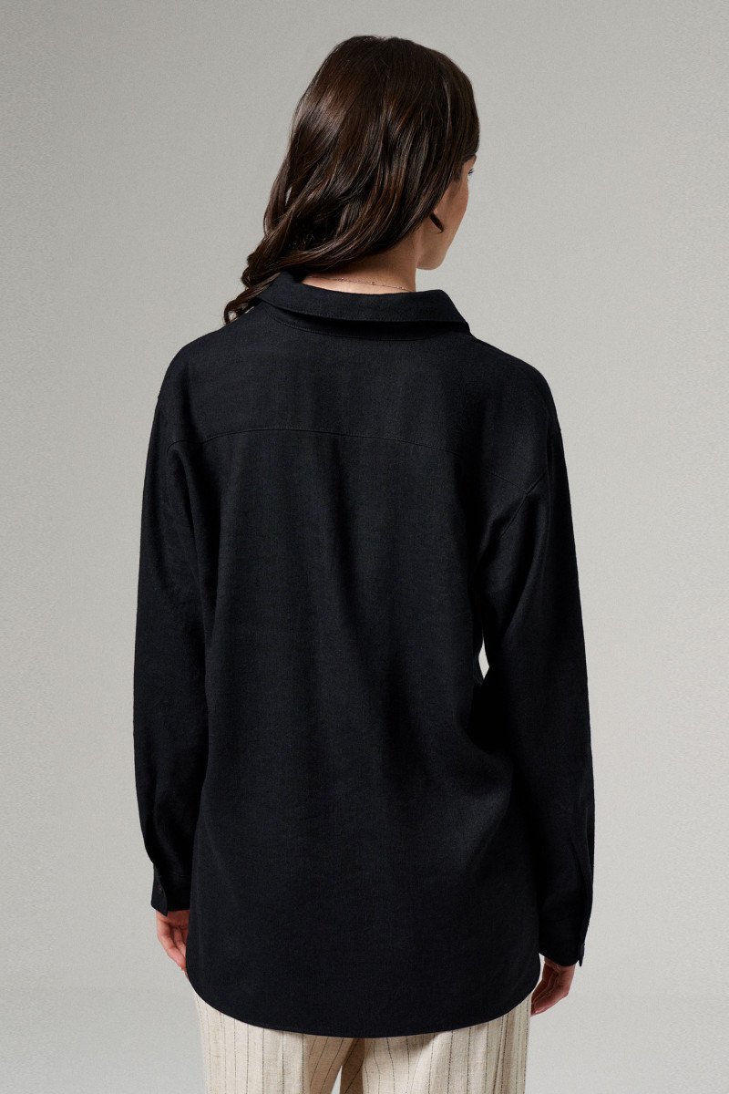 Блуза женская из вискозной ткани для повседневной носки. Блуза женская прямого силуэта с фронтальной застежкой на пуговицы. Воротник- стойка. Рукава втачные длинные оформлены притачной манжетой. По спинке отрезная кокетка с двумя защипами. Длина изделия классическая.