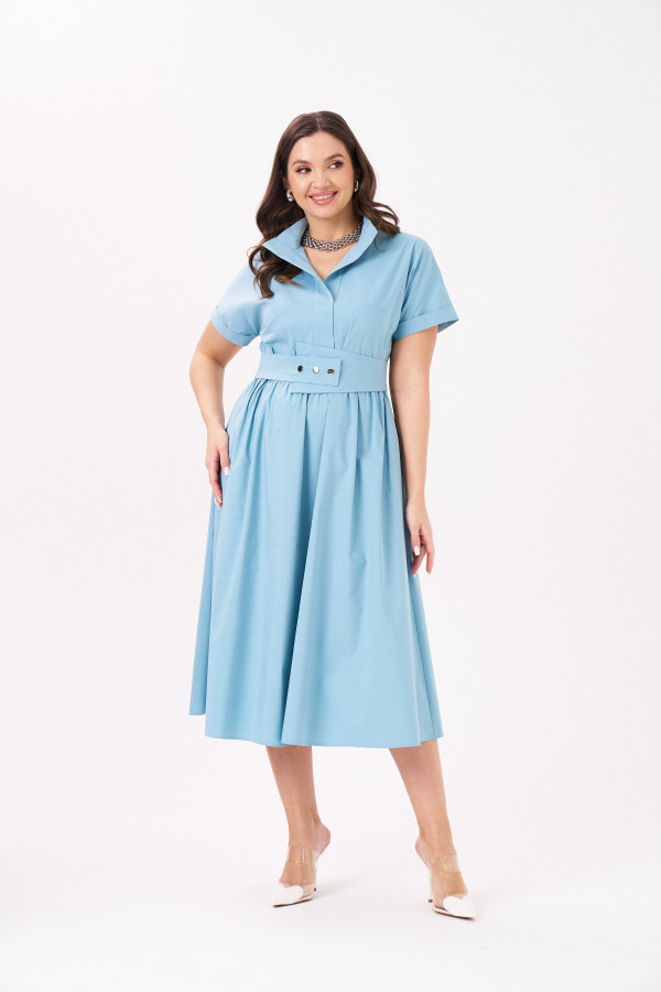 Платье из хлопковой ткани для повседневной носки. Платье на вискозной подкладке. Изделие свободного силуэта с укороченым рукавом реглан, оформленым манжетой на резинке. Изделие отрезное по талии, по низу юбки пришита рюша. Горловина оформлена стойкой.Длина изделия до колена.