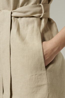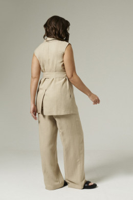 Жилет женский из вискозной ткани для повседневной носки. Изделиепрямого кроя без рукавов с отложным воротником. В боковых швах прорезные карманы. Жилет укомплектованопоясом из основной ткани изделия. Длина жилета классическая.