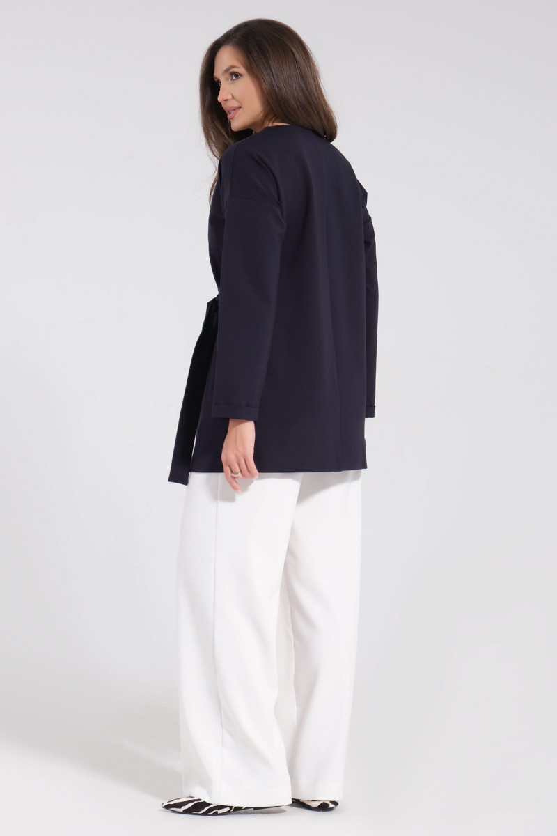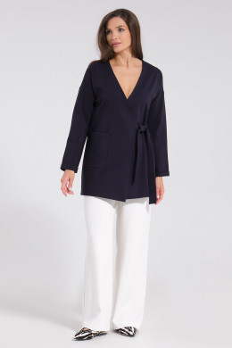 Стильный и практичный жакет выполнен из плотного и приятного к телу трикотажа. Спереди застёжка на запах с одной потайной пуговицей и притачным поясом от бокового шва. По переду выполнен один накладной карман. Линия плеча спущена. Рукав длинный с отложной цельнокроеной узкой манжетой. По спинке выполнен средний шов. Жакет без подкладки, обладает эластичностью, поэтому максимально комфортен. Идеальный вариант как на каждый день на работу в офис, так и для прогулки и досуга для стильной и энергичной девушки.