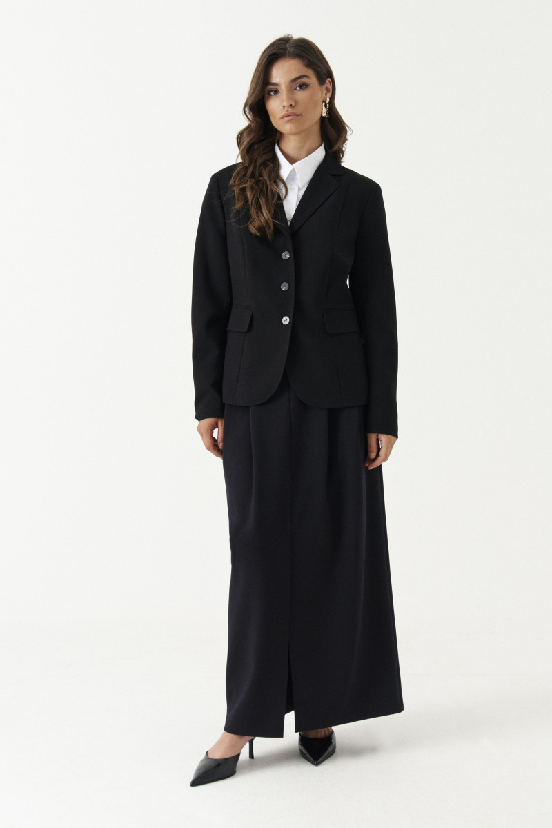 Жакет женский из поливискозной ткани для повседневной носки полуприлегающего силуэта. Жакет с центральной бортовой застежкой на обметанные петли и пуговицы. По переду имеются вертикальные рельефы, идущие от линии плеча до линии низа, а также имеются накладные карманы с клапаном. По спинке имеются вертикальные рельефы. Горловина обработана пиджачным воротником. Рукава длинные втачные. Очень красивый и стильный жакет, который вы сможете носить на разные мероприятия.