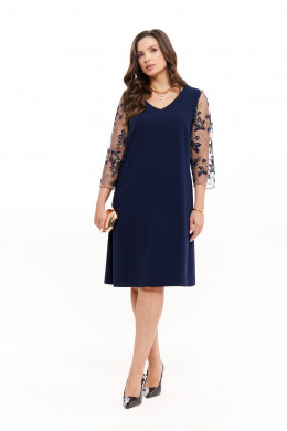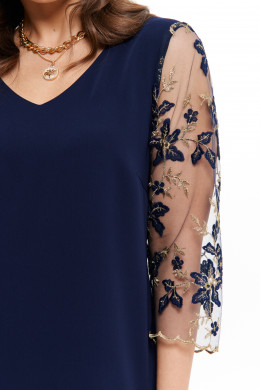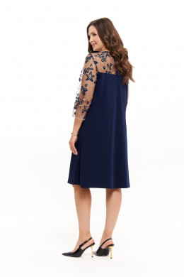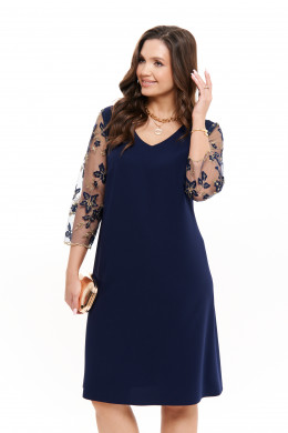Женское нарядное платье из струящейся ткани — это идеальный выбор для тех, кто ищет универсальный и стильный элемент гардероба. Классический крой в сочетании с V-образной горловиной и свободным силуэтом делает его подходящим как для повседневной, так и для офисной носки. Благодаря своей легкости и изящной посадке, платье создаёт ощущение комфорта на протяжении всего дня. Спинка украшена декоративной кокеткой из сетки с узором и изящной застёжкой на пуговицы, придающей образу утончённости. Два декоративных подреза на спинке тянутся от кокетки до линии низа, добавляя оригинальности. Втачные длинные рукава выполнены из вставки из той же сетки, гармонично дополняя общий дизайн. Это базовое женское платье станет отличным решением для весеннего и летнего сезона, когда особенно хочется выглядеть нарядно, не жертвуя удобством. Синий оттенок подчеркивает деловой стиль, что делает его уместным для офиса и деловых встреч, а также для праздничных мероприятий. Такое женское платье можно смело выбрать для торжеств, свиданий, прогулок или как элемент праздничного гардероба. Его свободный крой не сковывает движения, а потому вы будете чувствовать себя уверенно в любой ситуации. Платье подходит для женщин, ценящих комфорт, стиль и универсальность. Оно может стать как основой базового гардероба, так и ярким акцентом в нарядном образе.