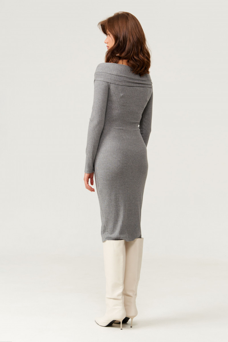 Платье женское из смесового трикотажного полотна для повседневной носки. Изделие полуприлегающего силуэта. Рукава спущенные, длинные с втачным рукавом. Перед по груди с наложением одной детали на другую, а также со спущенными плечами. Длина изделия чуть ниже колена. Очень красивое платье, в котором вы обязательно будете в центре внимания.