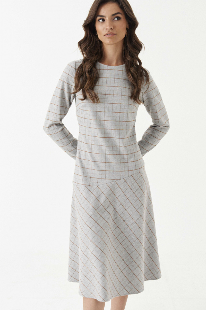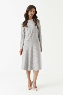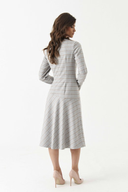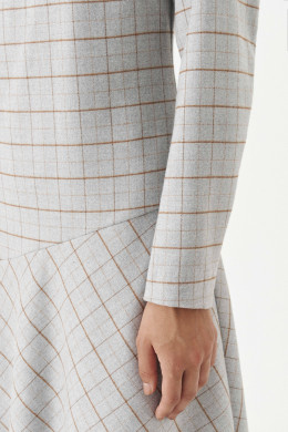 Платье женское из смесовой ткани в клетку для повседневной носки полуприлегающего силуэта. Платье отрезное по косой. Перед лифом имеет нагрудные вытачки. По спинке лифа имеются две талиевые вытачки и средний шов с застежкой-молнией в шве. Юбка платья слегка расширена к низу. Рукава втачные чуть спущено плечо, длинные. Длина платья чуть ниже колена. Красивое и изящное платье, которое придаст шарм и восхитительный вид вам и вашей фигуре.