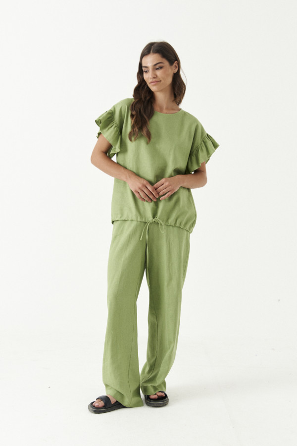 Брюки женские прямые из смесовой ткани на подкладке для повседневной носки, а также для деловых встреч. Верхний срез брюк обработан притачным поясом, застежка на один крючок, а также имеется застежка на тесьму-молнию в среднем шве брюк. Задняя часть брюк имеет талиевые вытачки и прорезной карман в рамку с двумя обтачками. В брюках расположен в боковом шве карман с подкройным бочком и с небольшими разрезами к низу изделия. Отличный классический вариант брюк, которые будут гармонично смотреться под любые изделия.