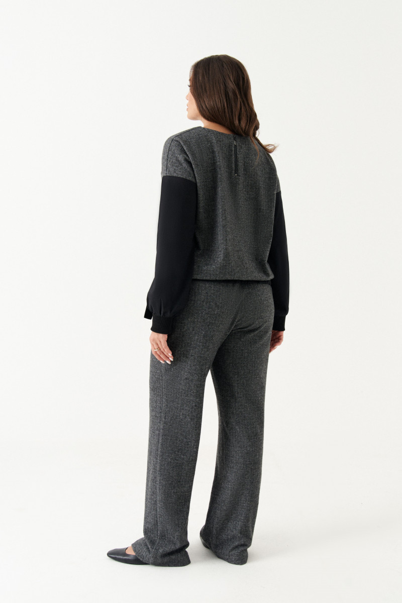Брюки женские из смесового трикотажного полотна для повседневной носки. Изделие прямого силуэта с прорезными карманами в боковых швах и подкройным бочком. Верхний срез брюк обработан притачным поясом, имеется вставка на резинке по поясу. Длина изделия классическая. Очень стильные и модные брюки. В них вы будете чувствовать себя комфортно, так как брюки из мягкого трикотажа.