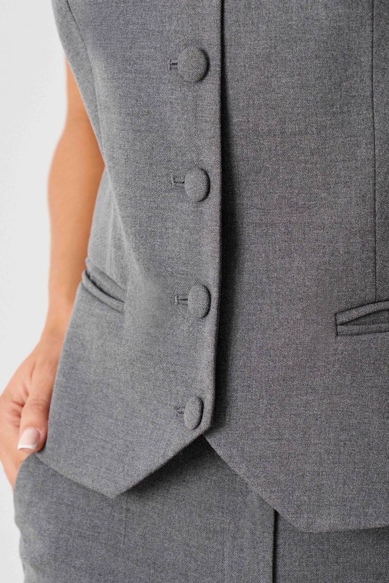 Жилет женский в классическом стиле - современная база женского гардероба. Классический жилет выполнен из костюмной ткани с V-образным вырезом, полуприлегающего кроя, подходит для образов в офис, в университет, в школу, на каждый день. Жилетка короткая на пуговицах имеет подкладка из вискозы, ее можно надевать под пиджак как первый слой (тренд сезона), под кардиган, а также сочетать с шелковыми топами, блузками женскими, водолазками, рубашками. Дополни жилеткой классическую прямую юбку, юбку мини, женские прямые брюки или брюки палаццо и даже джинсы!