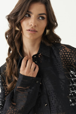 Блуза женская из легкой ткани для повседневной носки. Изделие прямого силуэта классической длины. Блуза с фронтальной застежкой на пуговицы, Воротник отложной рубашечный. Рукав длинный втачной оформлен притачной манжетой. Спинка с отрезной кокеткой. Красивая и очаровательная блузка станет вашим фаворитом.